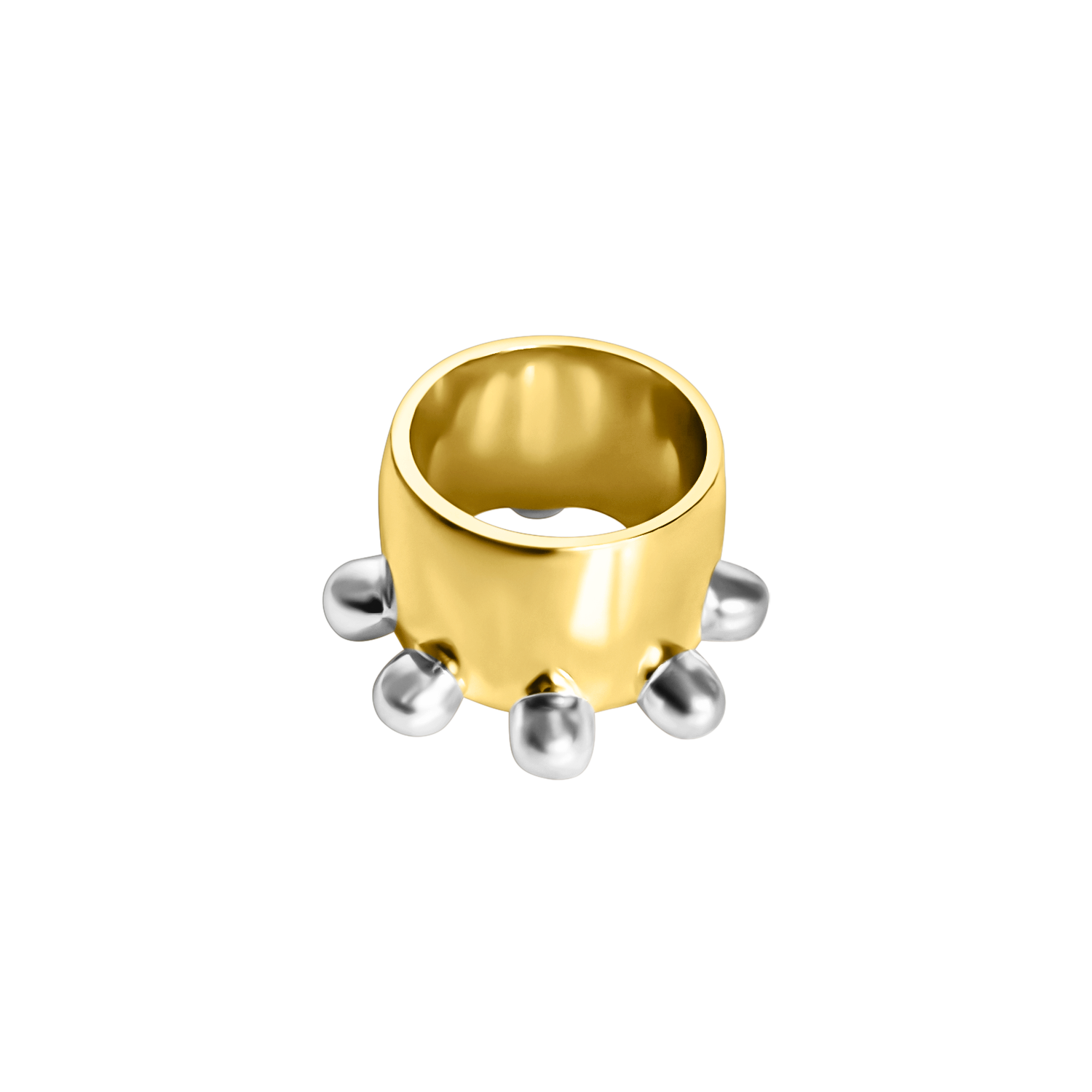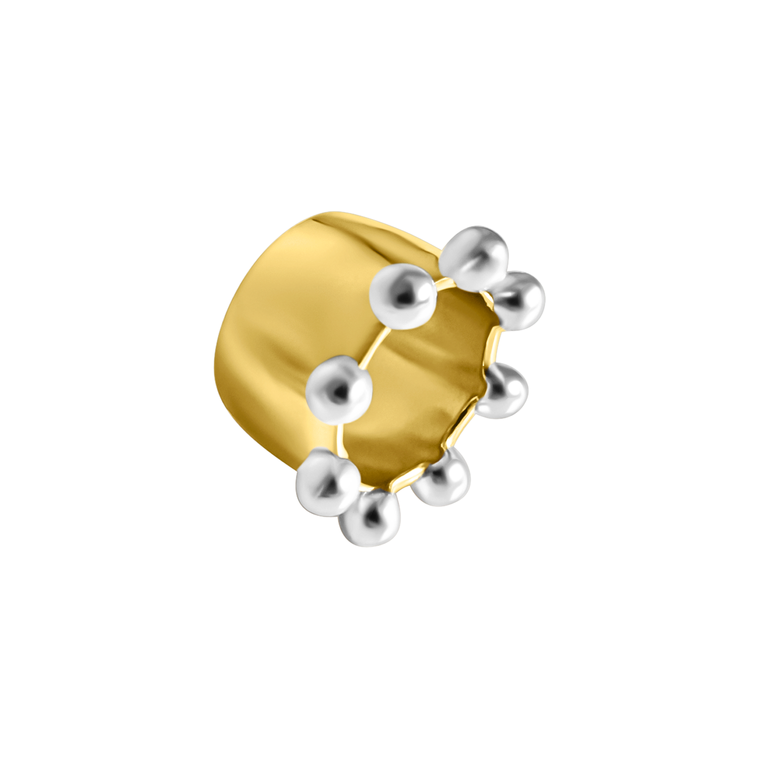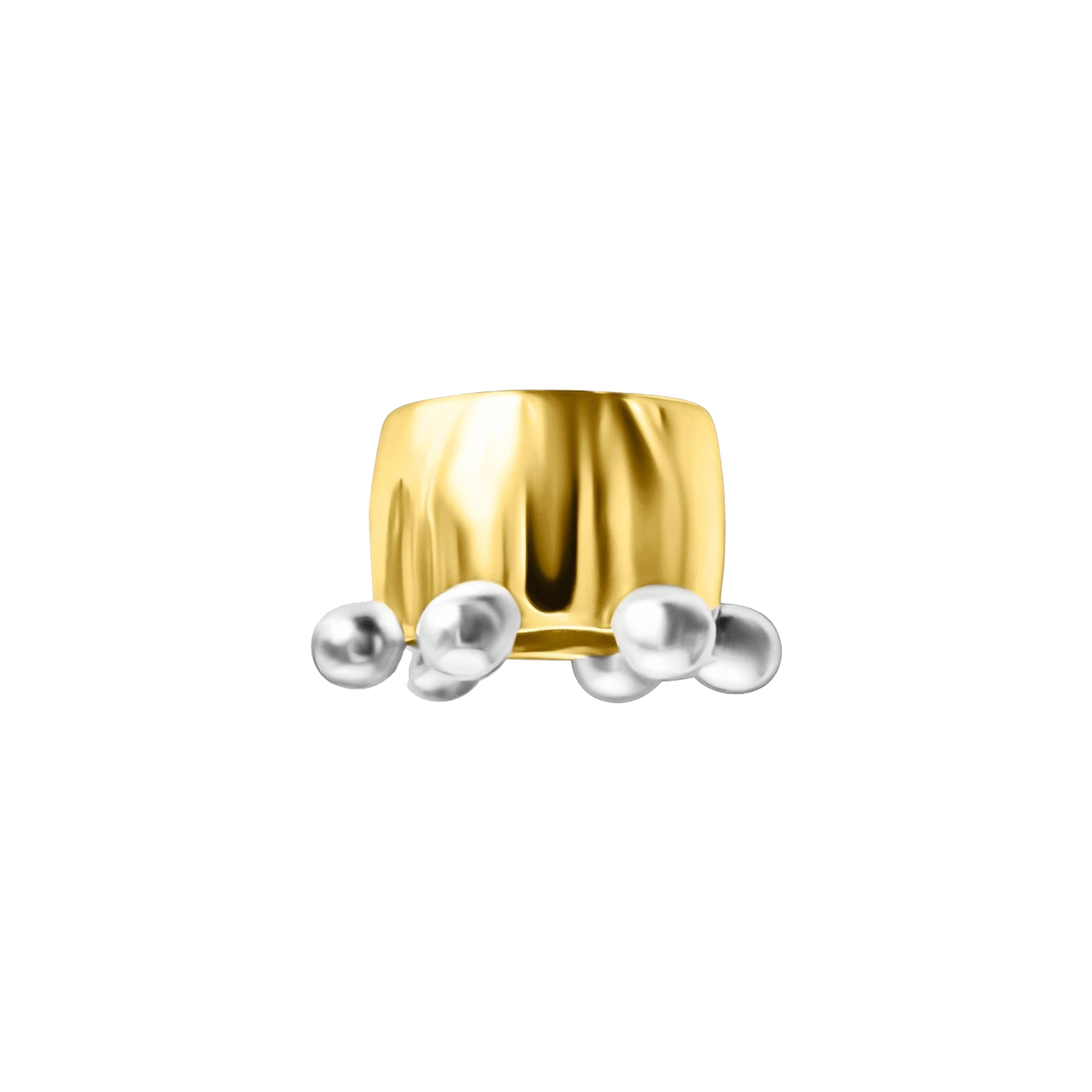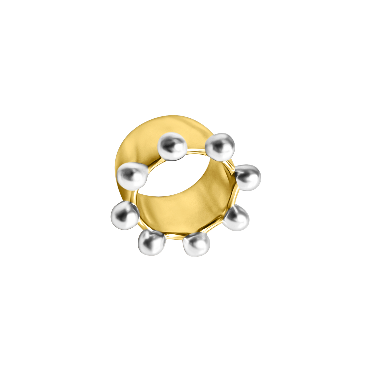 THIS TWO-TONE WIDE BAND RING, INSPIRED BY JEAN PUIFORCAT'S FRENCH ART DECO VASE, FEATURES A VERMEIL BAND AND A RING OF SOLID SILVER SPHERES AT ITS BASE. THE DESIGN ECHOES PUIFORCAT'S ELEGANT GEOMETRIC AESTHETIC, COMBINING MODERN SOPHISTICATION WITH VINTAGE CHARM. NAMED AFTER THE DISTINCTIVE HAT-SHAPED LOS ANGELES RESTAURANT / POPULAR DINING SPOT OF HOLLYWOOD STARS. OPENING IN 1926, THE DERBY QUICKLY BECAME AN ICONIC PART OF HOLLYWOOD'S SOCIAL SCENE.