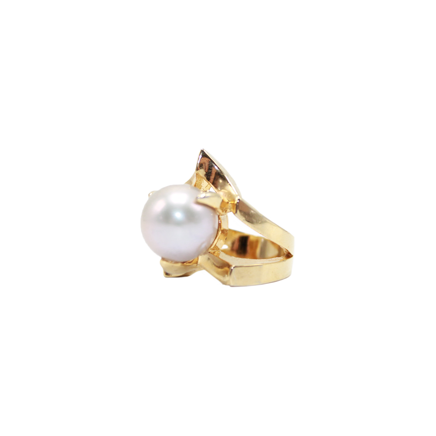 COMPOSITION: GOLD VERMEIL SET WITH PERFECTLY ROUND 16 MM WHITE PEARL