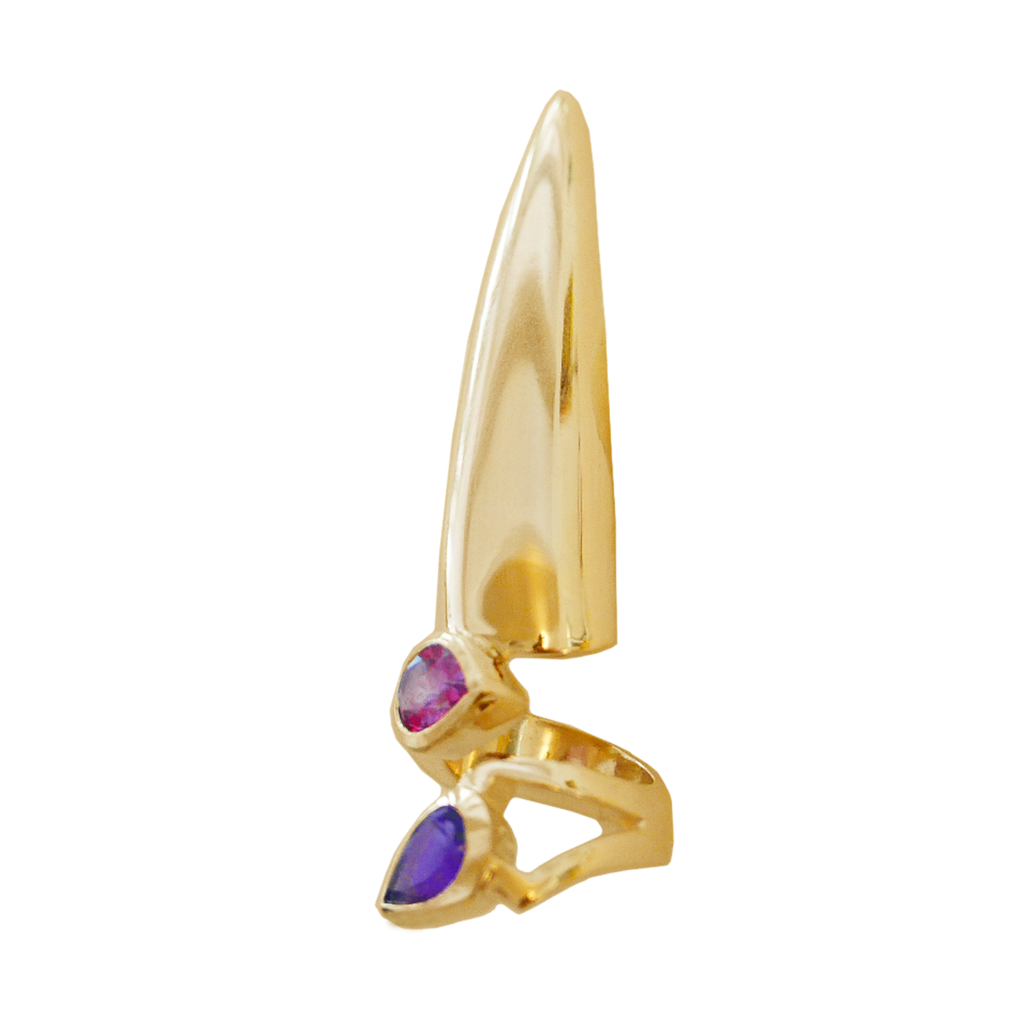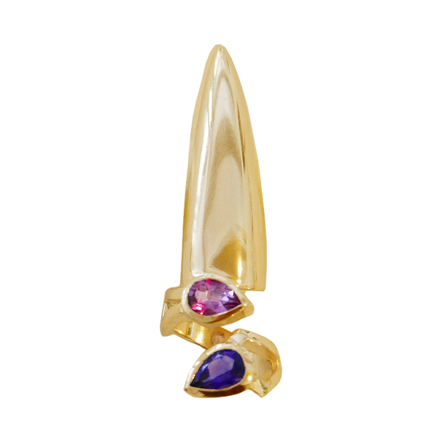 COMPOSITION: GOLD VERMIEL SET WITH A PEAR SHAPE AMETHYST PEAR SHAPE PINK TOPAZ