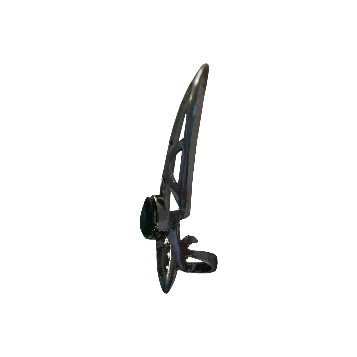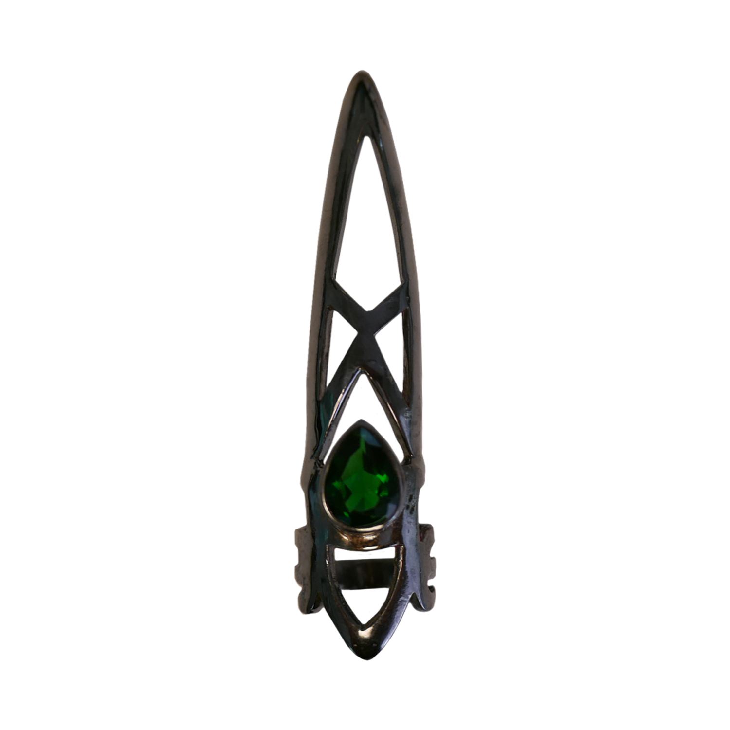 COMPOSITION: BLACK RHODIUM PLATING SET WITH A PEAR SHAPE GREEN GARNET OR WHITE TOPAZ