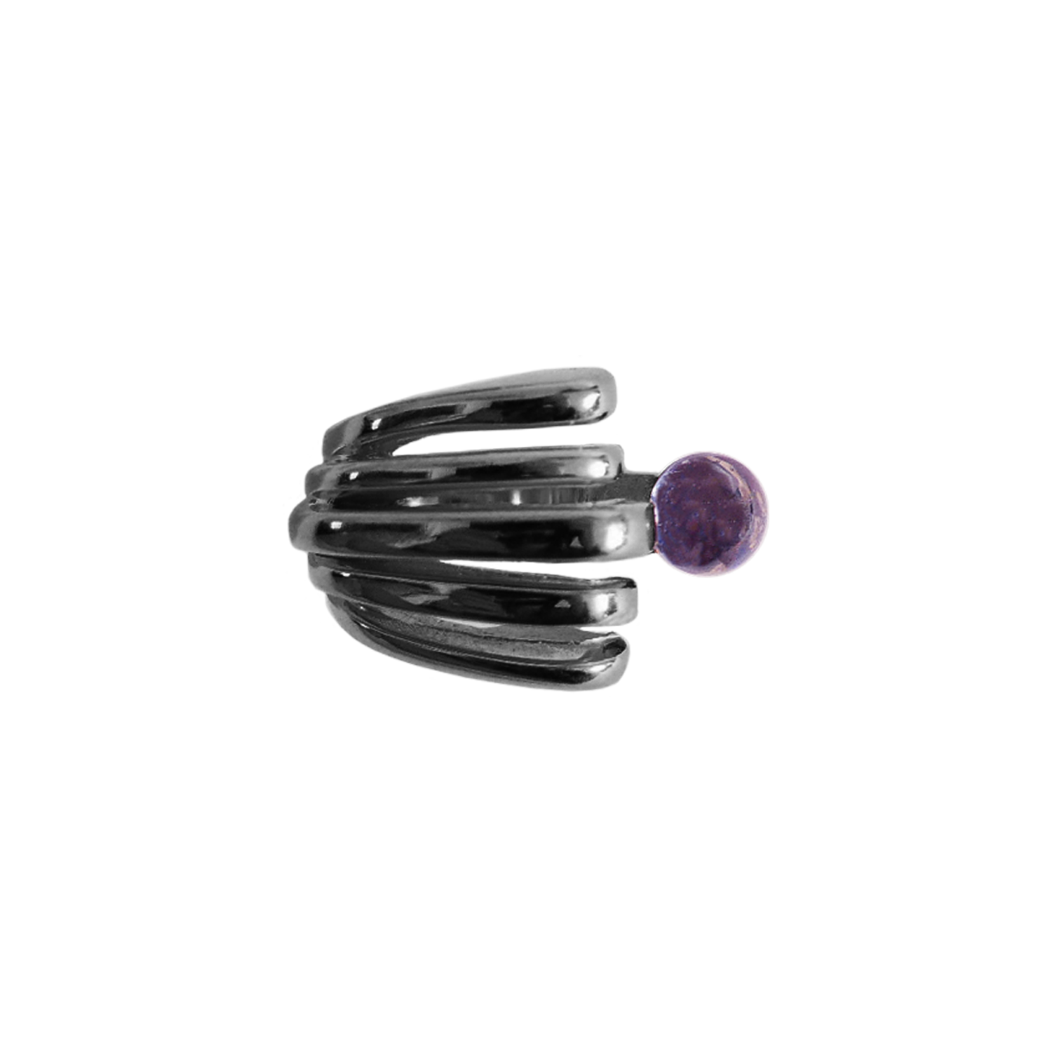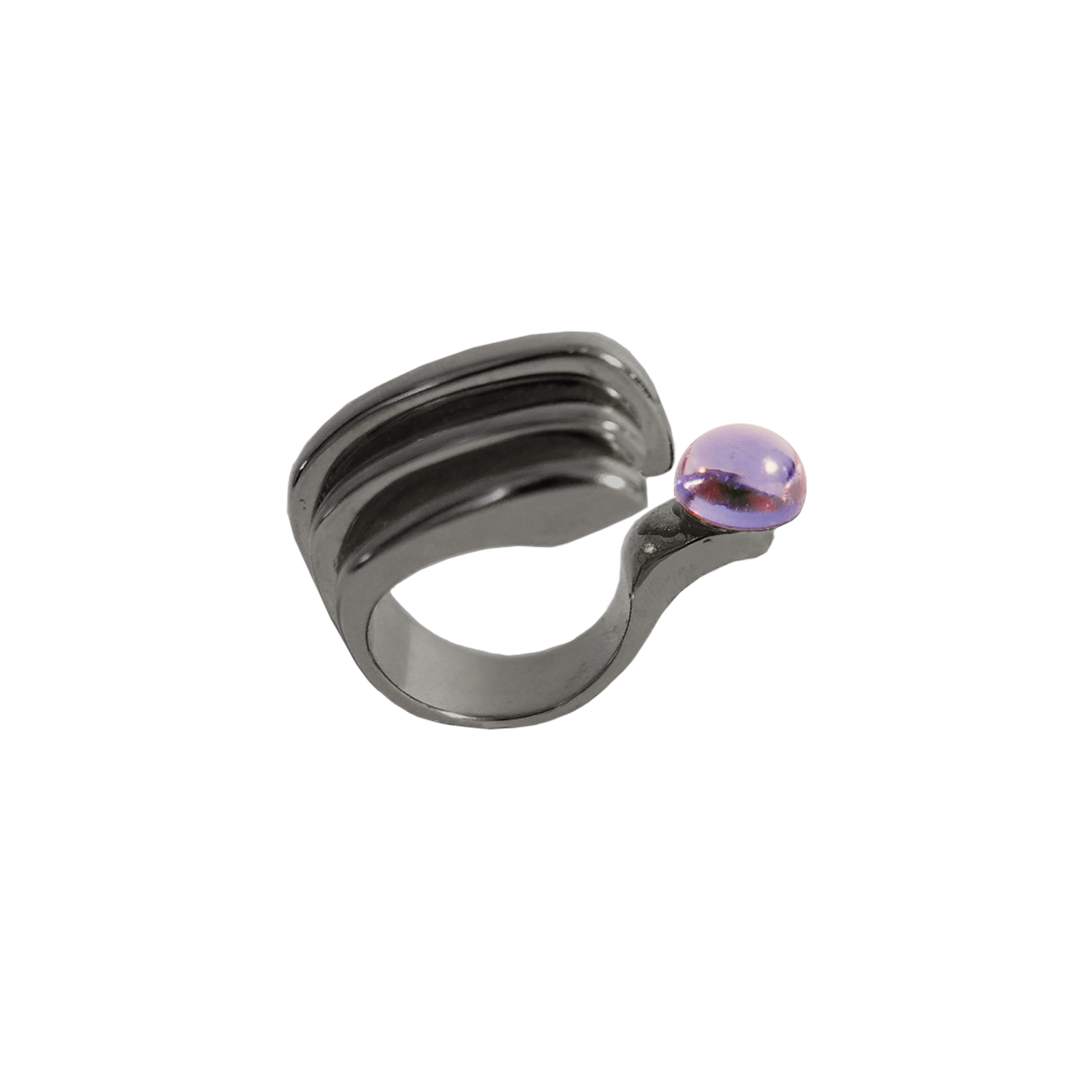 COMPOSITION: BLACK RHODIUM PLATING SET WITH CABOCHON AMETHYST