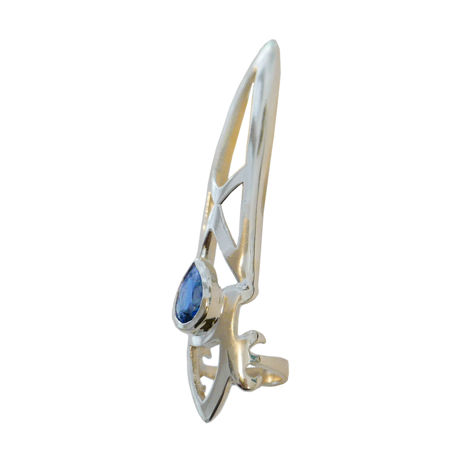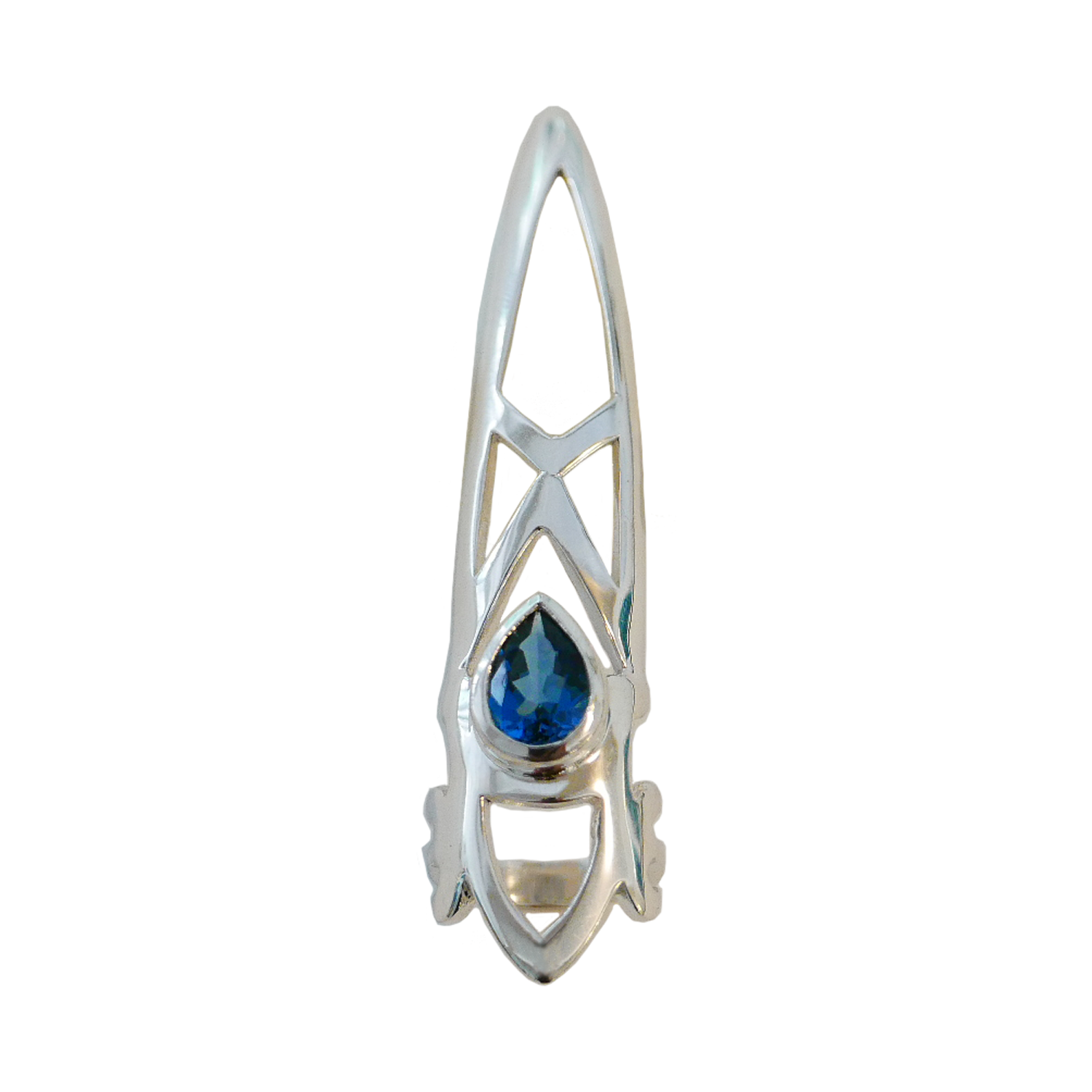 COMPOSITION: 925 SILVER SET WITH A PEAR SHAPE GREEN GARNET OR WHITE TOPAZ