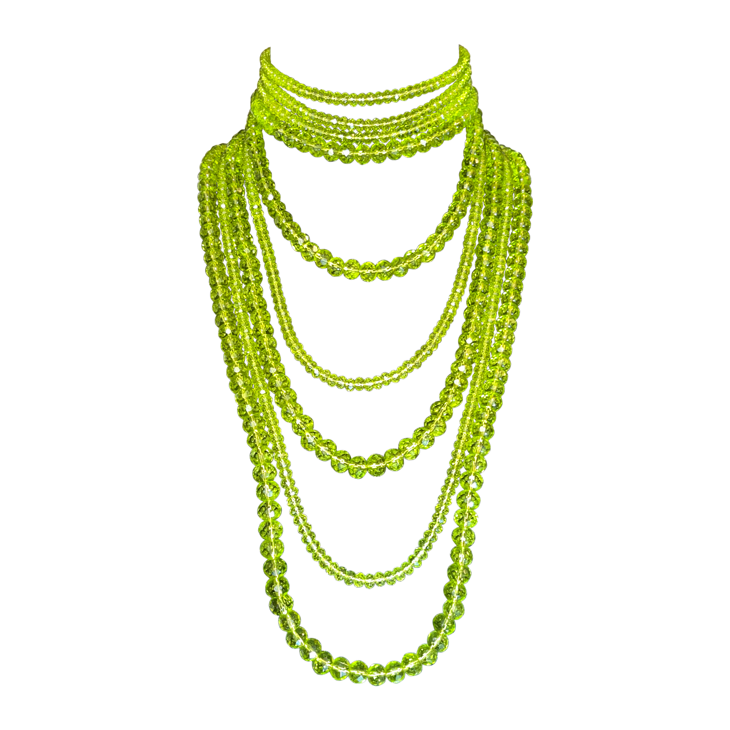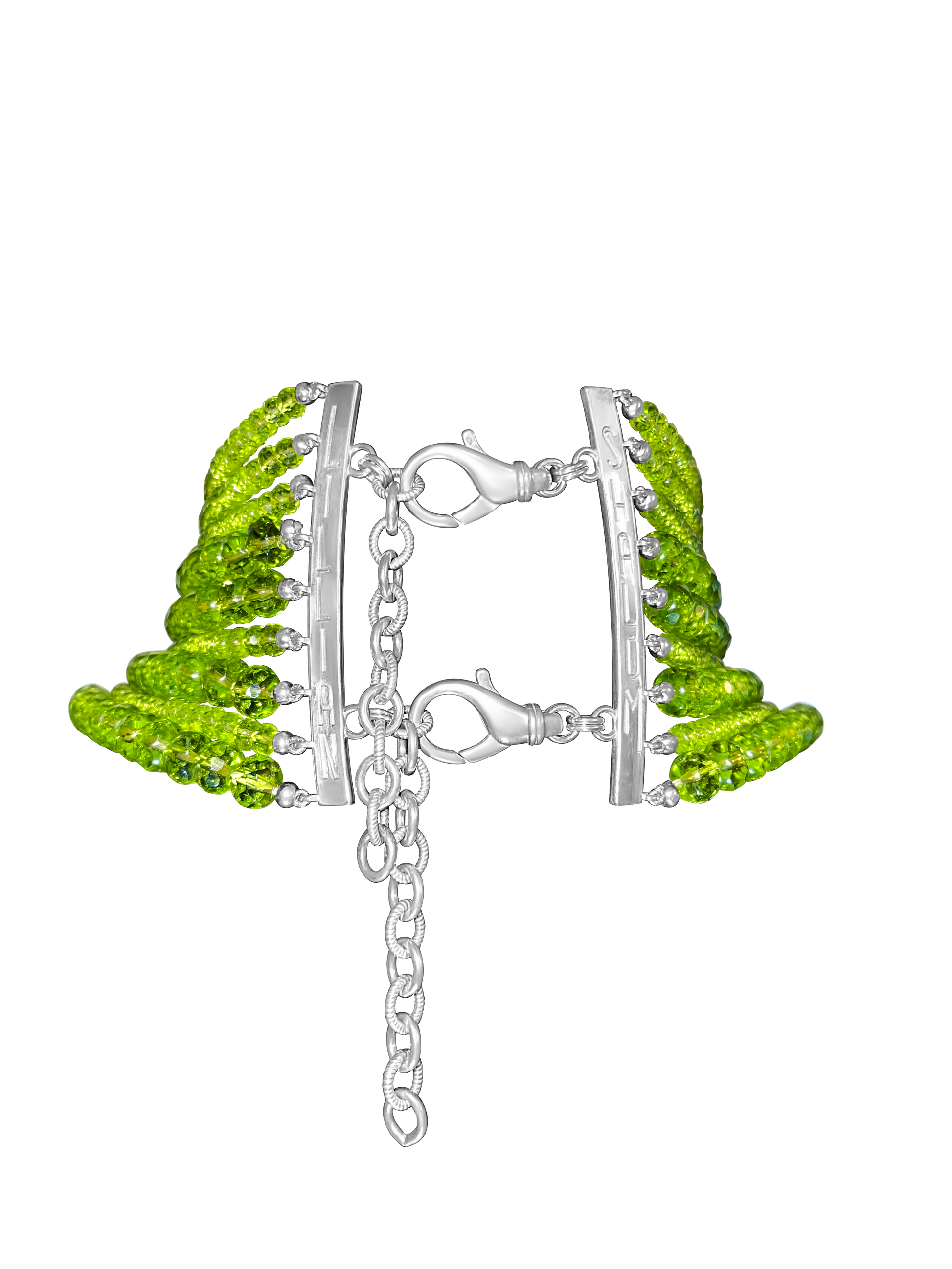 COMPOSITION: 9 ROWS OF CHARTREUSE HAND STRUNG BOHEMIAN CRYSTAL BEADS, 3 INCH 925 SILVER CLASP, SILVER CHAIN