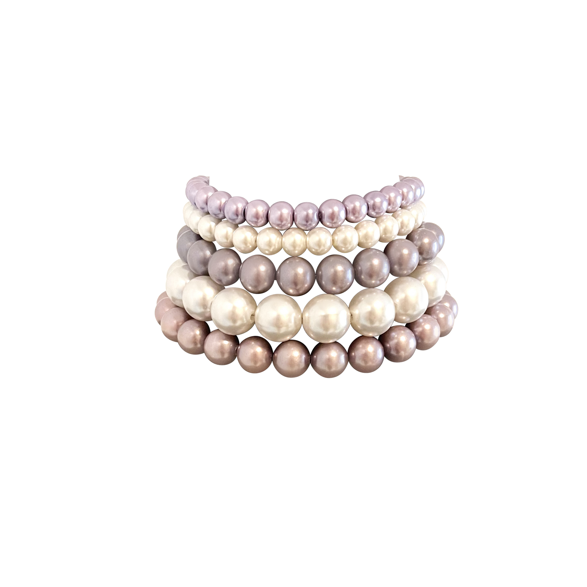 COMPOSITION : 925 STERLING SILVER CLASP, 5 ROWS OF MULTI-TONE / SIZE FAUX PEARL BEADS