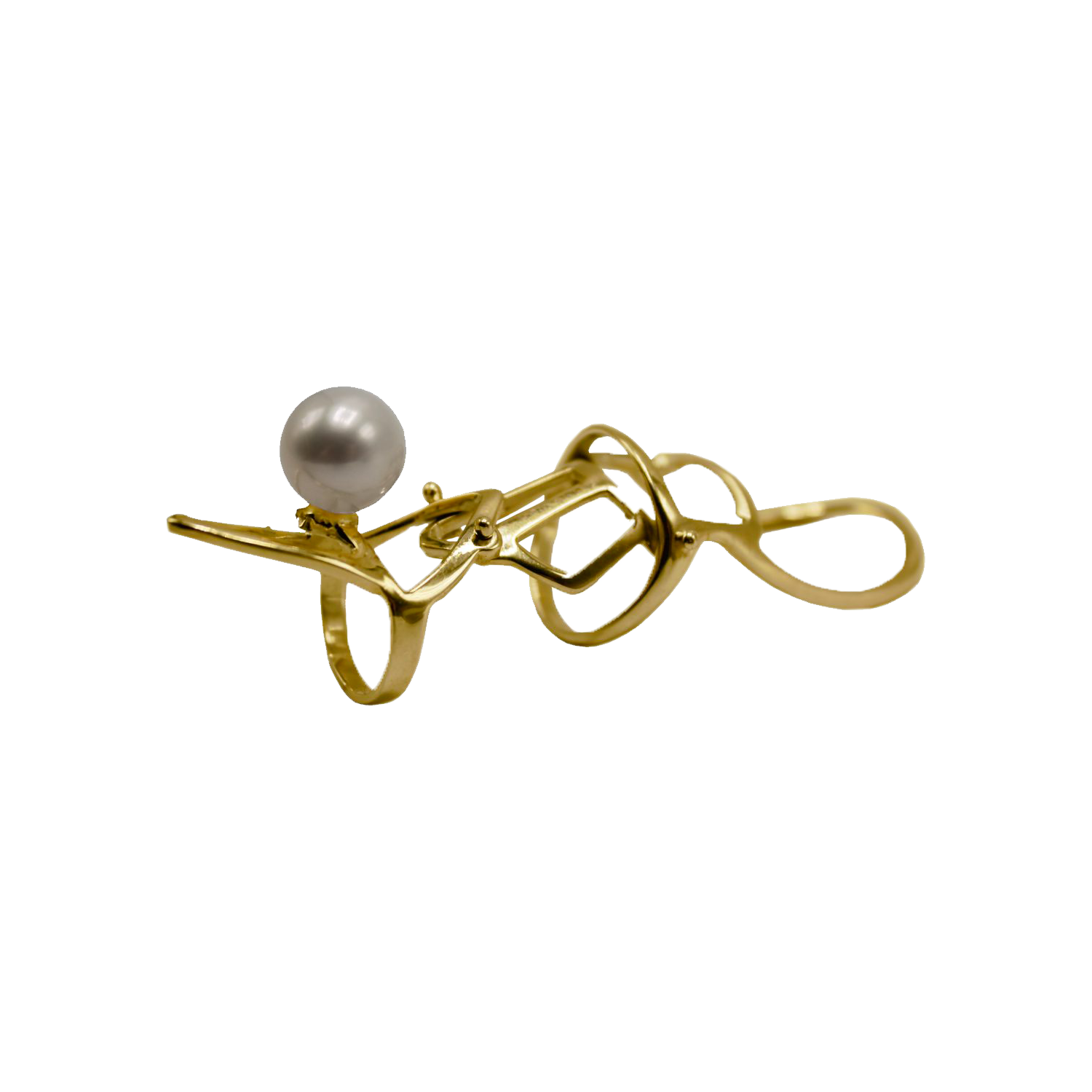 COMPOSITION: GOLD VERMEIL SET WITH A SINGLE 15 MM LUSTROUS PEARL
