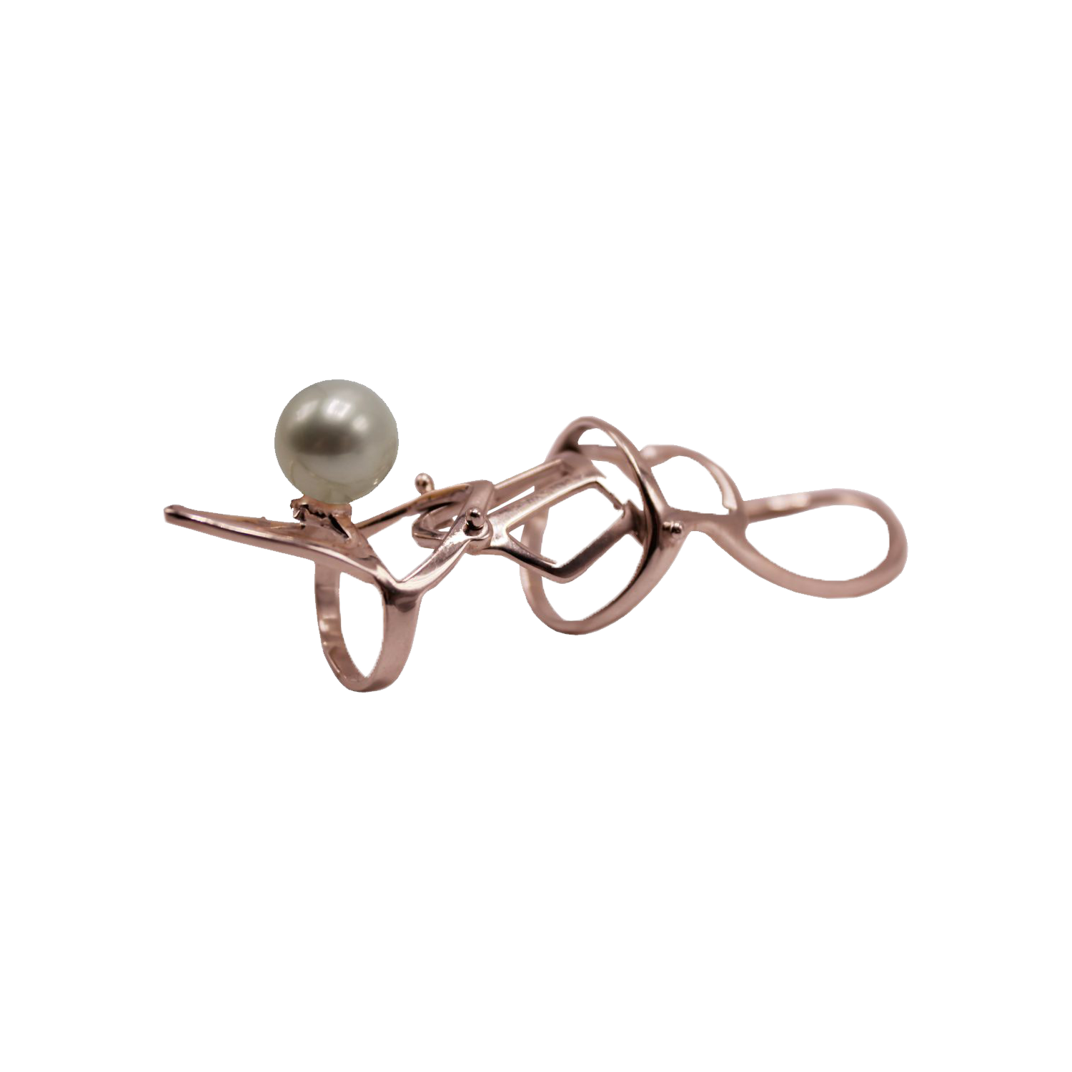 COMPOSITION: ROSE GOLD VERMEIL SET with SINGLE LUSTROUS 15 MM PEARL